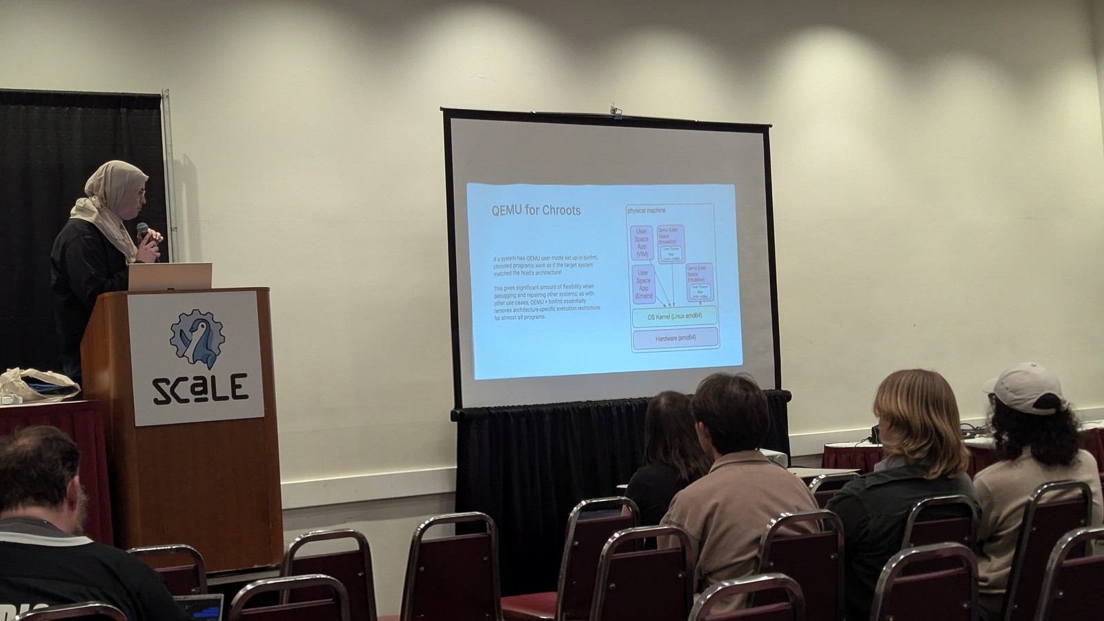 The talk had some rough edges flow-wise, and I’d like to flesh it out with more examples and talk to more people in industries where open source hasn’t taken a firm hold yet to see what barriers they’re encountering in their organizations. But I had some great conversations after my talk and I think it generally went well. Slides from the talk are available here: /presentations/2026/Open_Source_in_Closed_Ecosystems_-_SCALE_23x.pdf (1.3M pdf)