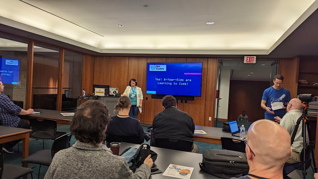 The final talk before lunch was from Deanna Bledsoe on “8-Year-Olds are Learning to Code!” and she gave a great tour of the landscape today for younger folks learning how to code. I had been passingly familiar with Scratch and code.org, but it had been a while since I’d looked at any of it, and that was all before I became a parent. I didn’t really need an excuse to strike up a conversation with her, so it was a real delight when I saw her in the hallway later and we were able to talk about our shared interest in getting kids into STEM for a few minutes. I also used my time in the “hallway track” to chime into a conversation about package management, which folks came and went from and then ended up talking about amateur radio. It was during this discussion that I remembered what I missed so much about in-person conferences: those random, geeky personal connections. I’m shy, and half the people I was talking to I’d just met, but in that moment we were all just geeking out over topics we either had expertise or interest in. It’s so nice to be back to doing events. Just prior all that, I attended a talk by Tom Swartz on “Open Source Home Automation” where he focused on Home Assistant, and I was really glad to hear (and see!) that they’ve made some really great advances in the past couple years, it may be time for me to play around with it again.