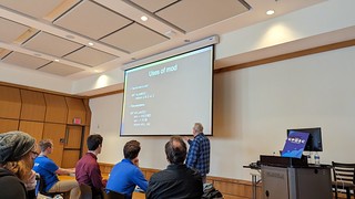 Then I joined a packed room for a talk by my friend Walt Mankowski on “Remedial Math for Programmers” which I remember cheering him on for when he submitted his talk. In my case, about half the “remedial math” he was talking about was stuff I never actually learned because I didn’t go to school for computer science (I didn’t go to college or university at all). So it was a refresher for a few things, but some of the concepts were entirely new to me. I loved his style of presenting it with examples though, since it made it so much easier for me to understand.